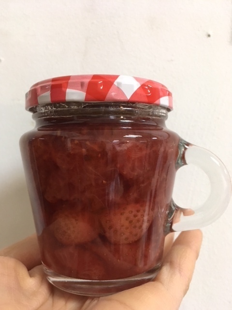 完成しているのにラベル貼りがまだです、というものもございますのでお待ちいただけたらと思います。今日は「スチューベンとすぐりのジャム」「いちごジャム」など完了予定です。今まで通販にはお出ししていなかった「いちごコンポート」も登場予定です。